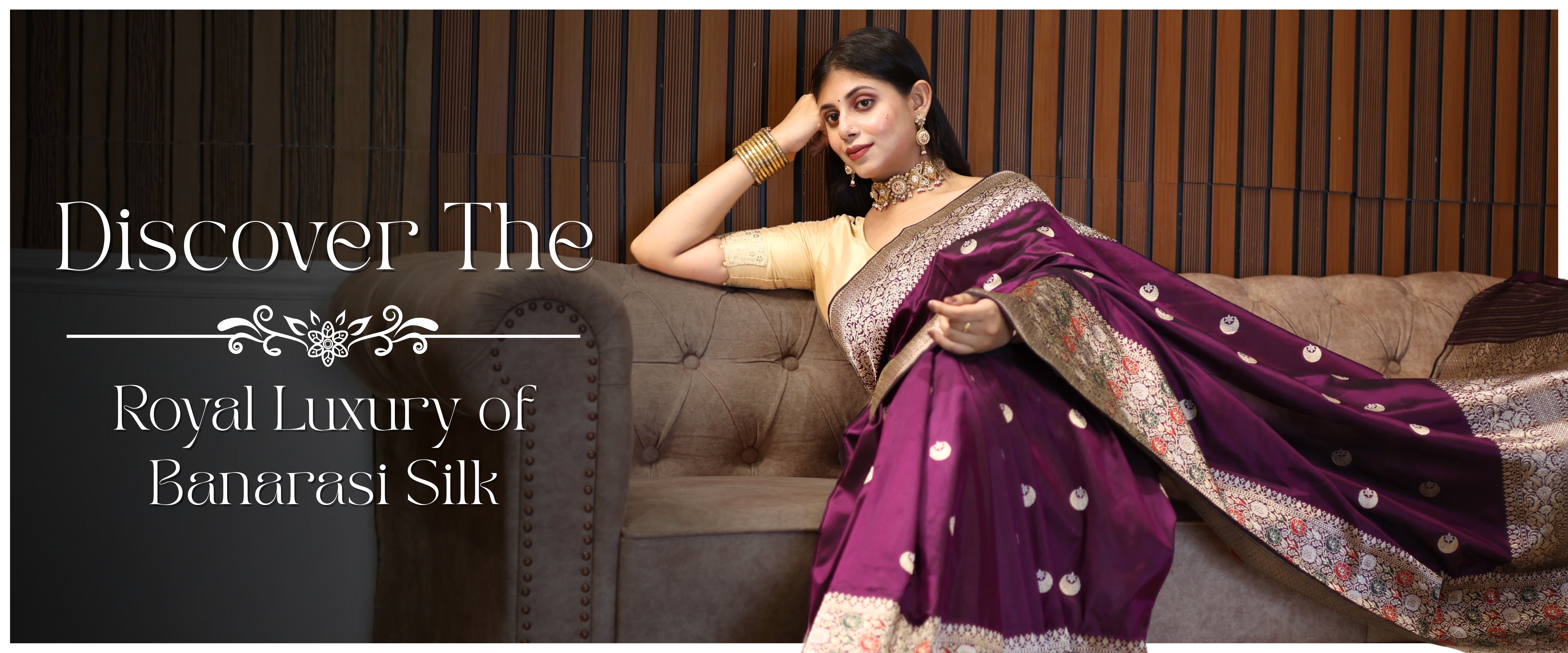 Explore our collection and experience the real charm of handwoven Banarasi sarees in Varanasi, delivered with trust, purity, and heritage.