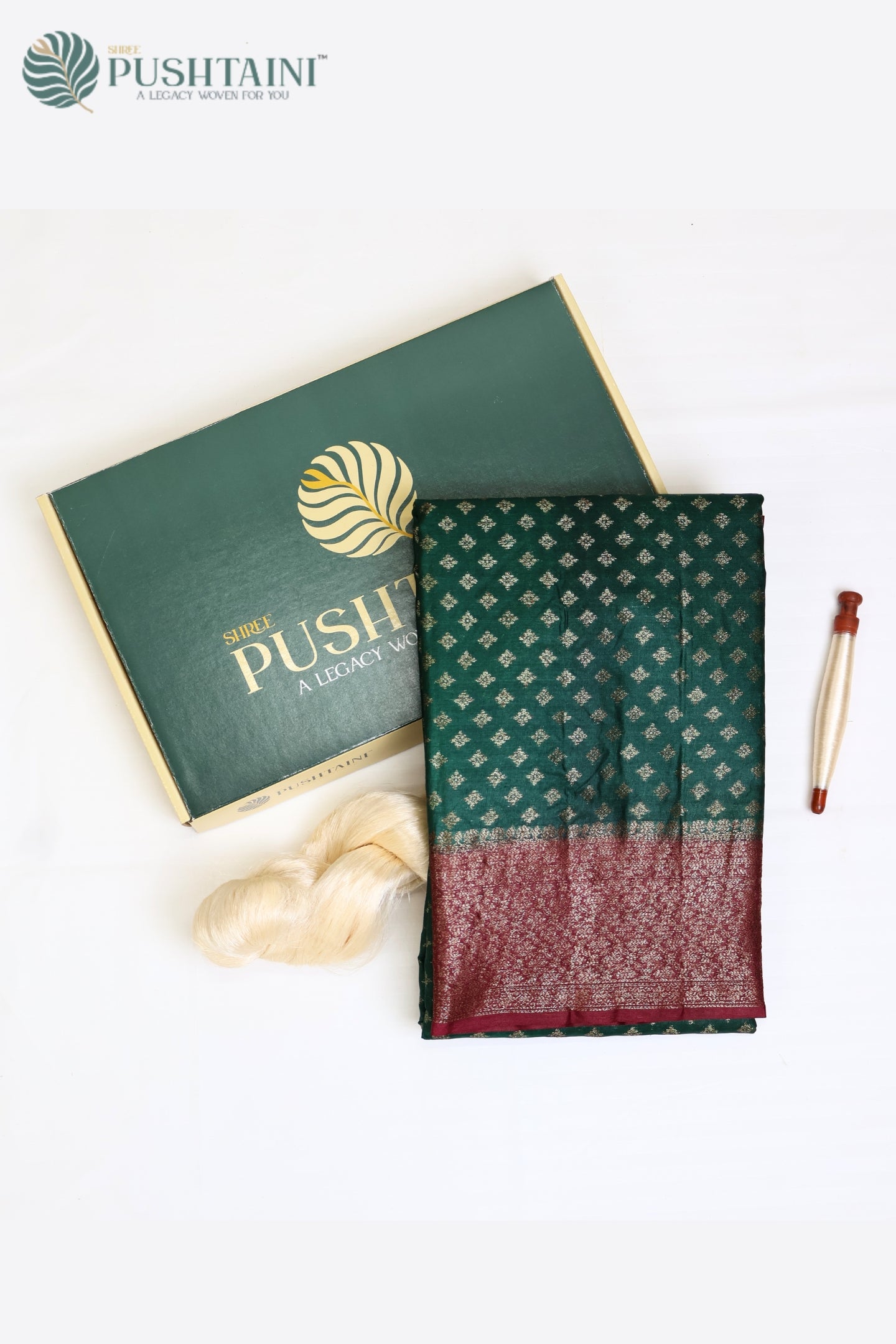 From the heritage looms of Banaras Shree Pushtaini, where every weave is a reflection of legacy, art, and enduring beauty.