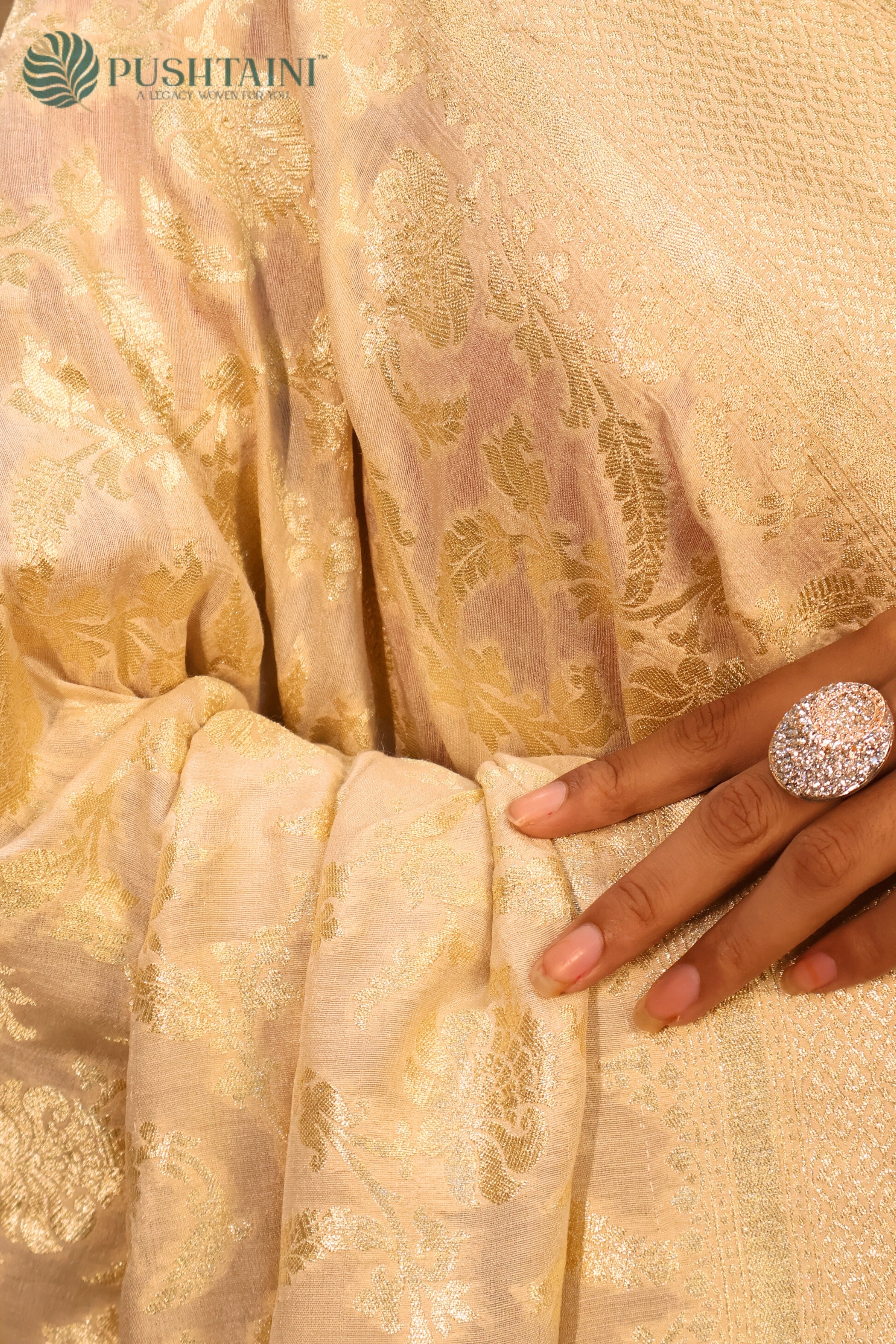 Cream White Pure Khaddi Munga Silk Saree Water Zari