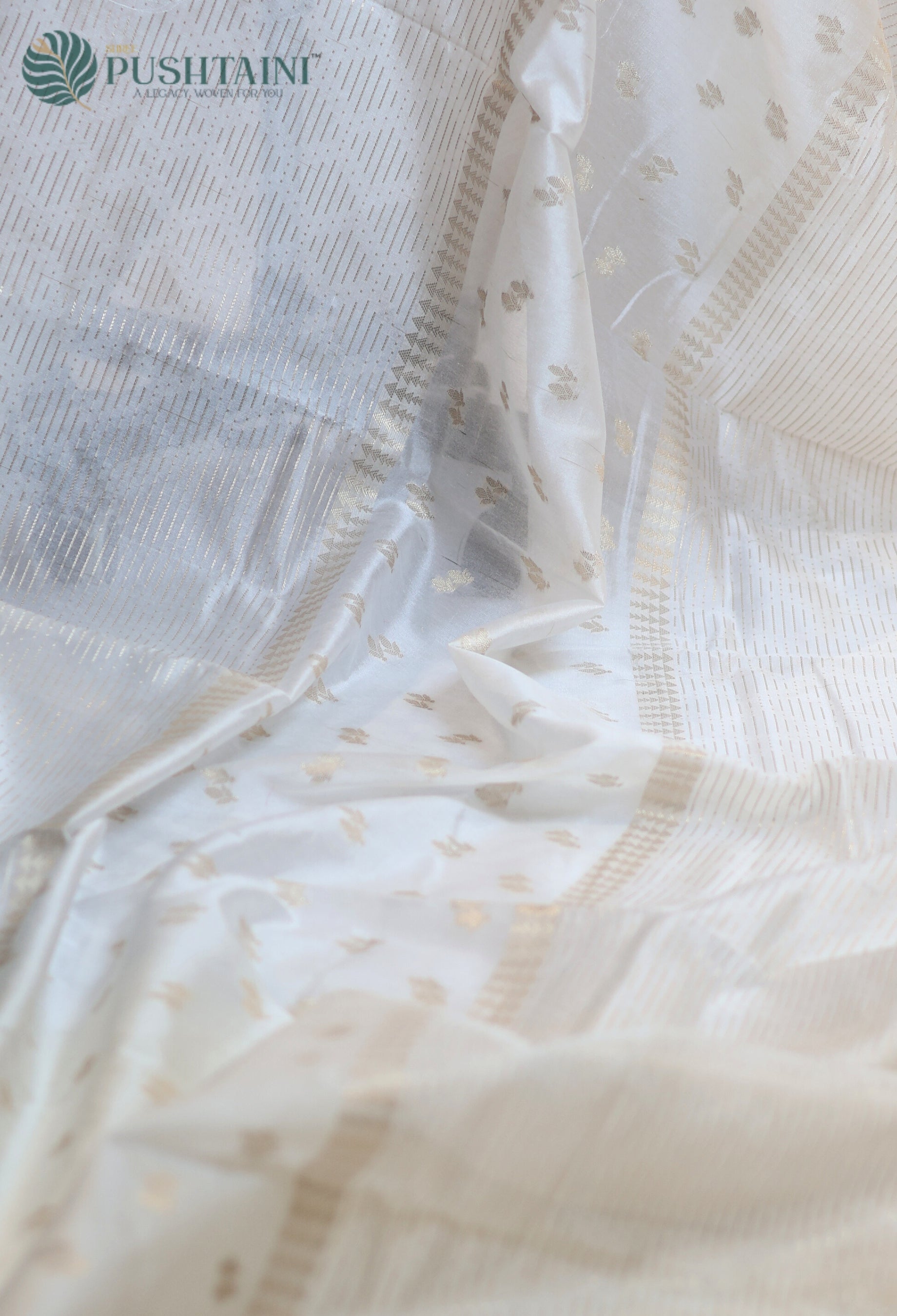 Off White (Dyeable) Semi Viscos Georgette Banarasi Saree with Gold Zari Work
