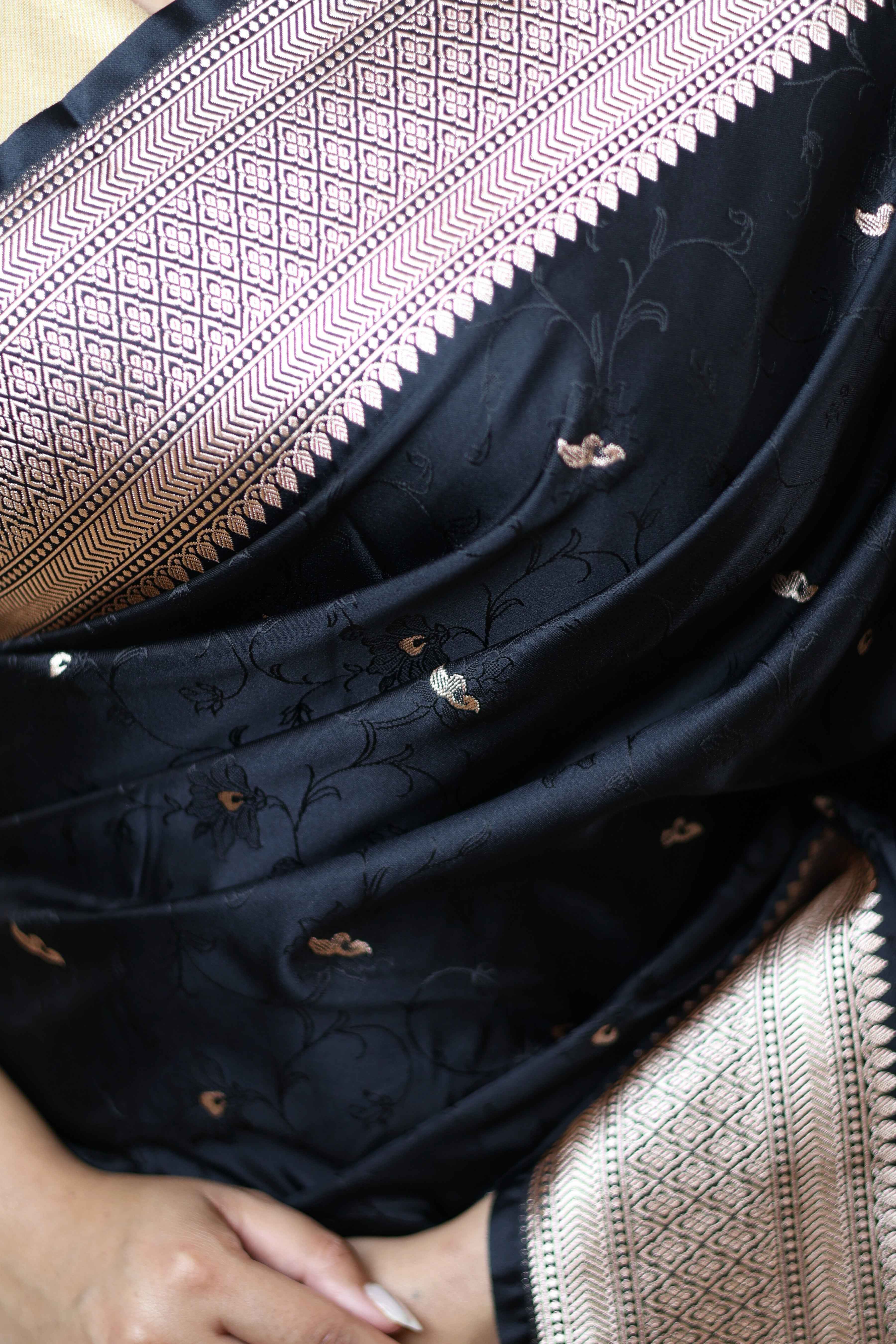 Rooted in the weaving legacy of Banaras, this creation reflects timeless artistry, refined craftsmanship, and the quiet luxury of heritage textiles — designed to be treasured for generations.