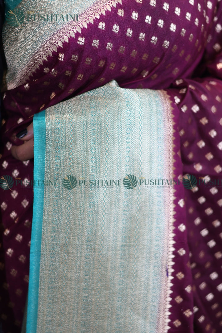 Wine Colour Banarasi Crepe Georgette Zari Booti Saree